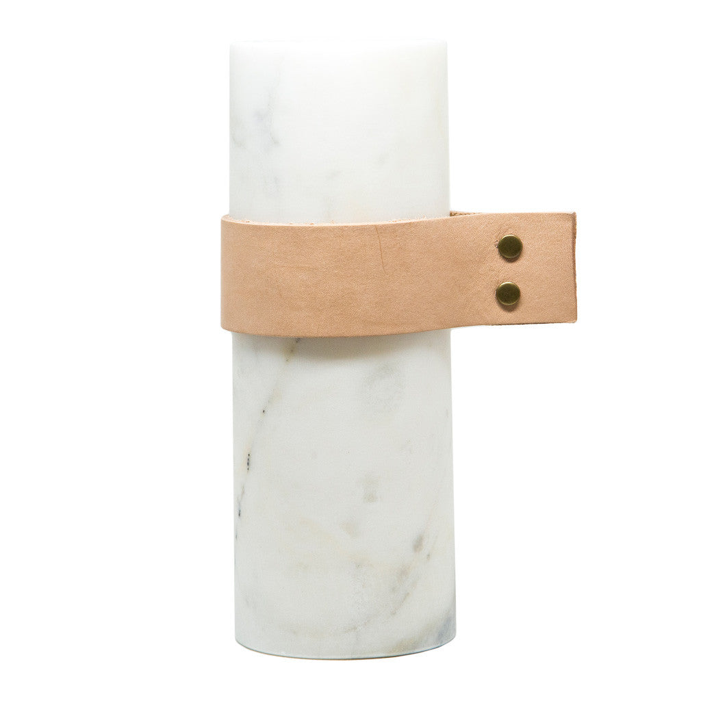 This vase is made from a beautiful white marble and features a removable brown leather strap. Classic in style, with a modern Scandinavian twist, it will look gorgeous on any dining table, sideboard or console. Just as lovely empty as it is when filled with flowers, this timeless vase will bring style and sophistication to any space.