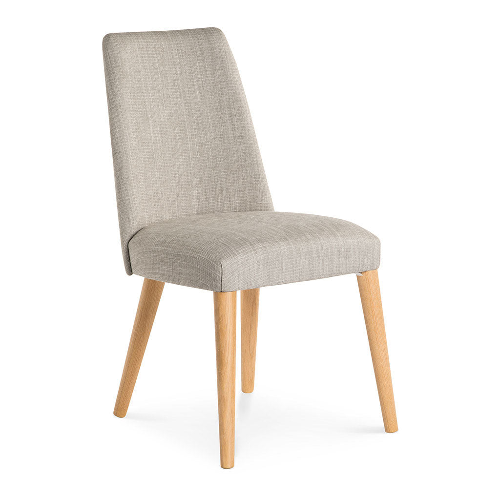 The Josefine Dining Chair epitomises modern sophistication, with its elegant silhouette and contemporary Scandinavian design. It features a refined, contoured high back for maximum support, a padded seat cushion for comfort and sculpted, tapered round legs. The warmth and beauty of natural oak, combined with the neutral grey palette of the linen-look fabric, makes this stylish chair an exquisite addition to any home.