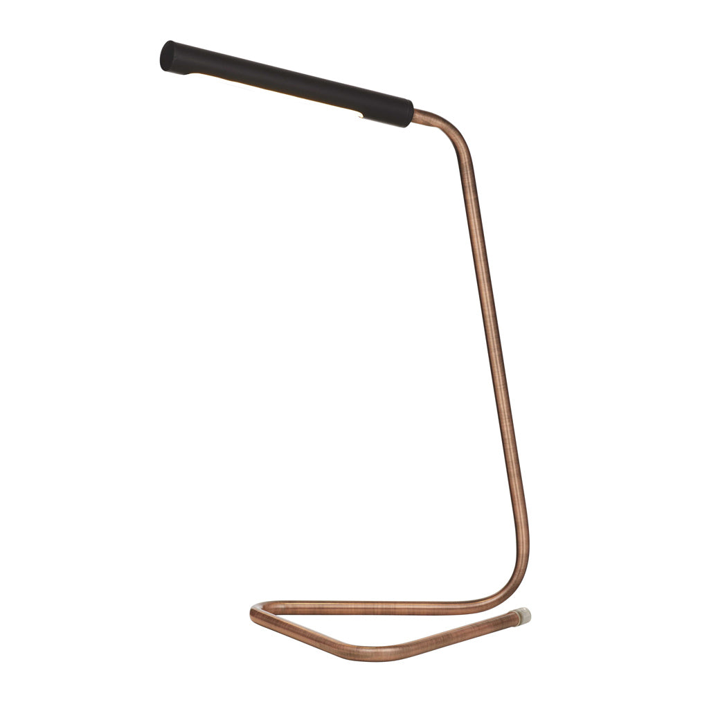 The sleek and sexy Jarvis Desk Lamp is perfect for the modern home office. The contemporary lines of the copper stand go beautifully with the minimalist black metal shade, resulting in a piece that is more like a sculpture than a desk lamp! This stylish lamp is powered by an energy efficient LED globe (included), giving you thousands of hours of light.
