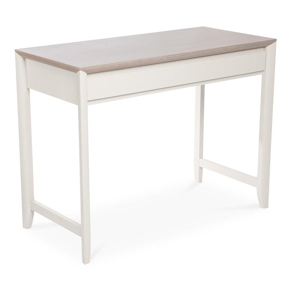 The Sienna Desk is simple yet charming in design, with its elegant form and sculpted, tapered legs. As practical as it is beautiful, it features a front drawer that folds down flat and pulls out to reveal ample additional desk space for a laptop, notepad and books. When not in use, this handy drawer tucks away to hide all your paperwork and stationery, keeping the table top clutter-free and ready to style. Perfect for studying, working or penning a best selling novel, this desk combines the warmth and beauty of the grey washed oak top, with the classic style of French provincial design, and will make a beautiful addition to any home.
